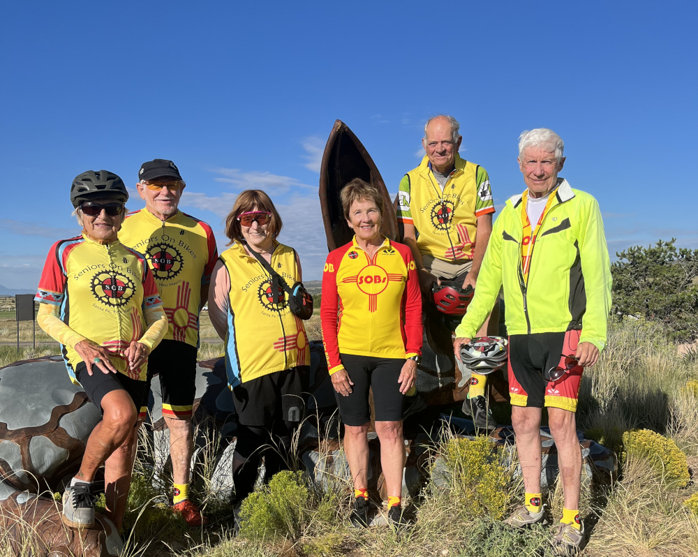Santa Fe Seniors on Bikes (SOBs) are a group of road cycling enthusiasts who meet three times a week, Tuesday, Thursday, and Saturday mornings to ride the Santa Fe area. Our rides are of varying distances, usually 20 to 50 miles, but opportunities always exist to extend, or to turn around at any point along the way.